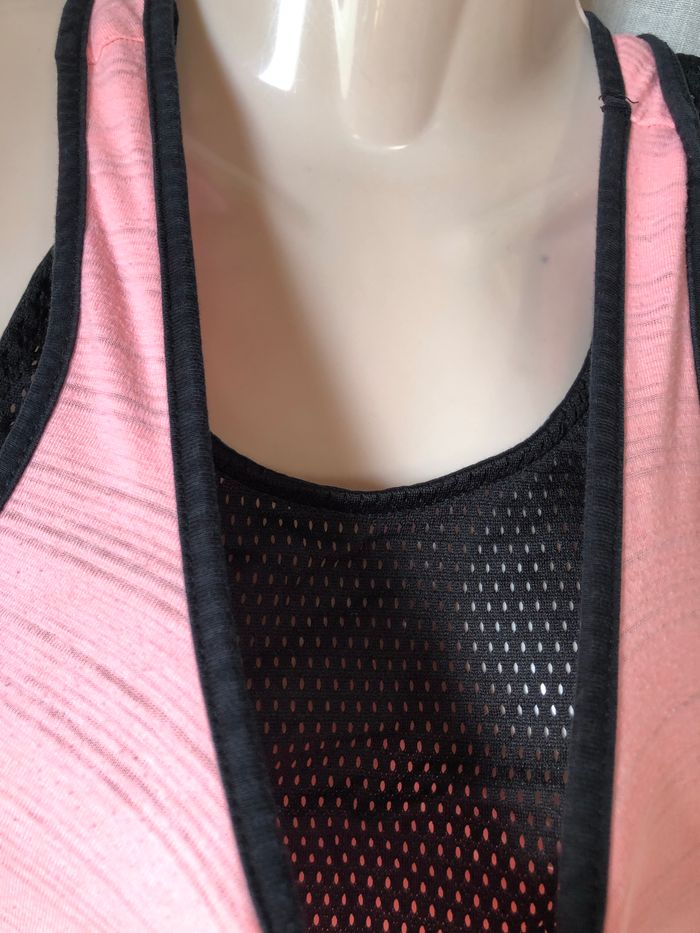 T-shirt débardeur de sport rose corail et noir Doublé d’une brassière en tissus aéré noir Taille 12 ans 146-152 cm Kiabi