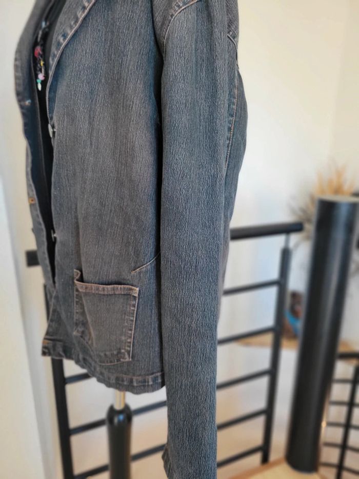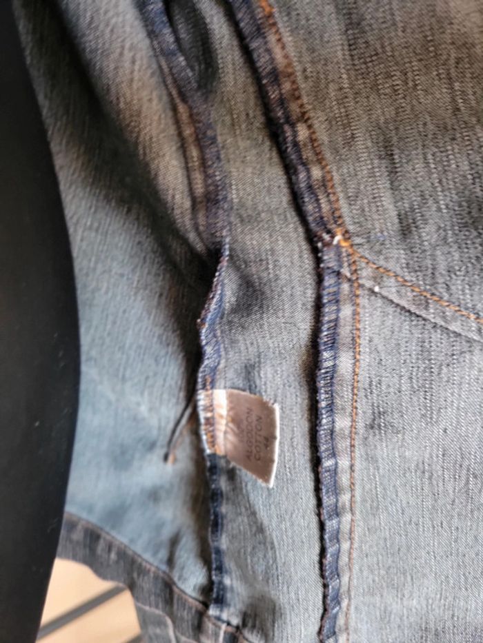 🌞 PROFITEZ DES RÉDUCTIONS SUR LES LOTS !!!🌞 Veste en jean légère taille 44, couleur bleu orangé Mesures : Epaule à épaule : 50cm Aisselle à aisselle : 54cm Longueur : 61cm En très bon état, juste un fil au niveau de la boutonnière #cheyenne6870femmeXL 🌻N’hésitez pas à me contacter pour toutes informations ou photos supplémentaires.🌻