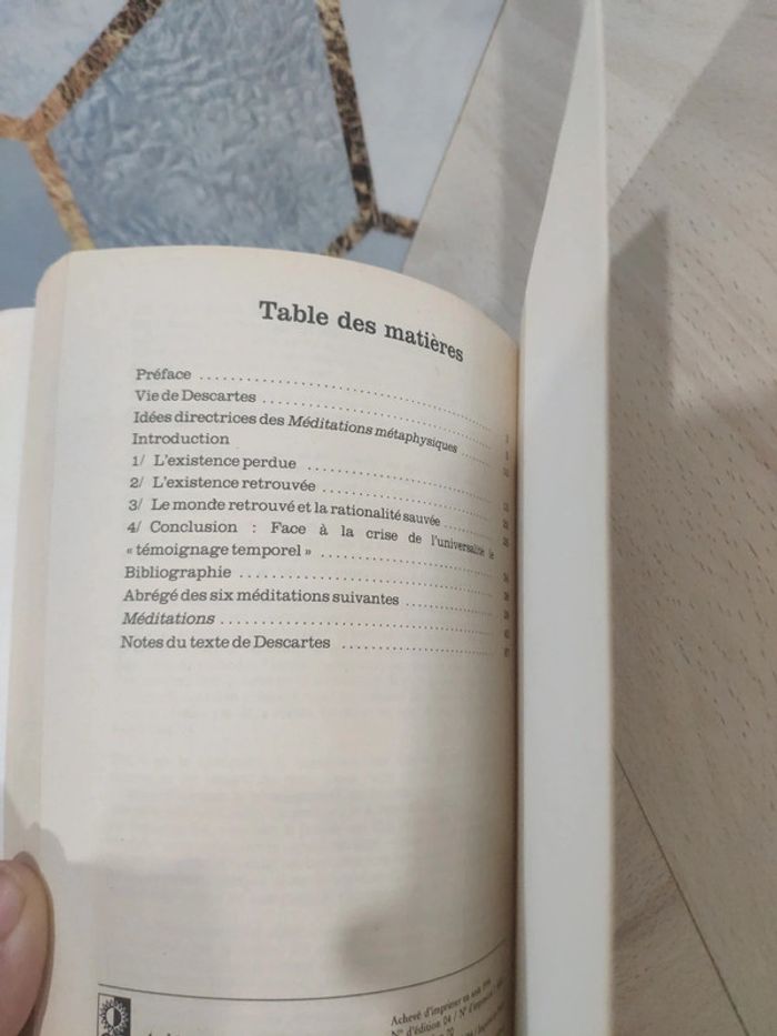 Livre méditations métaphysiques Descartes œuvres et opuscules philosophiques