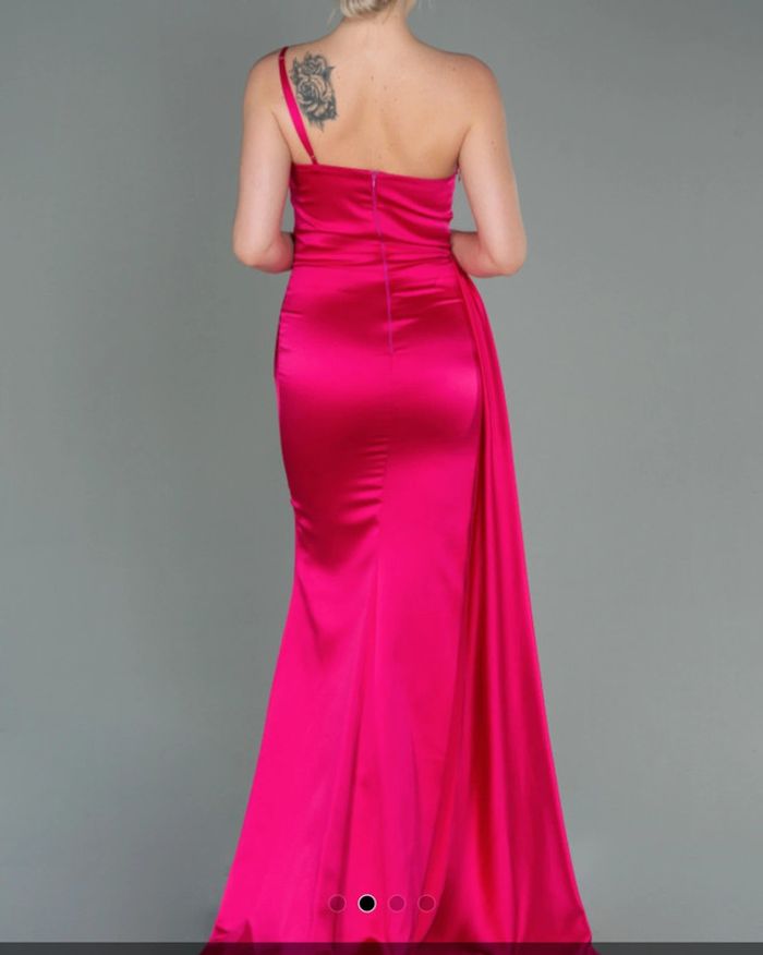 Robe de soirée en satin longue fushia taille 48 neuve - photo numéro 3