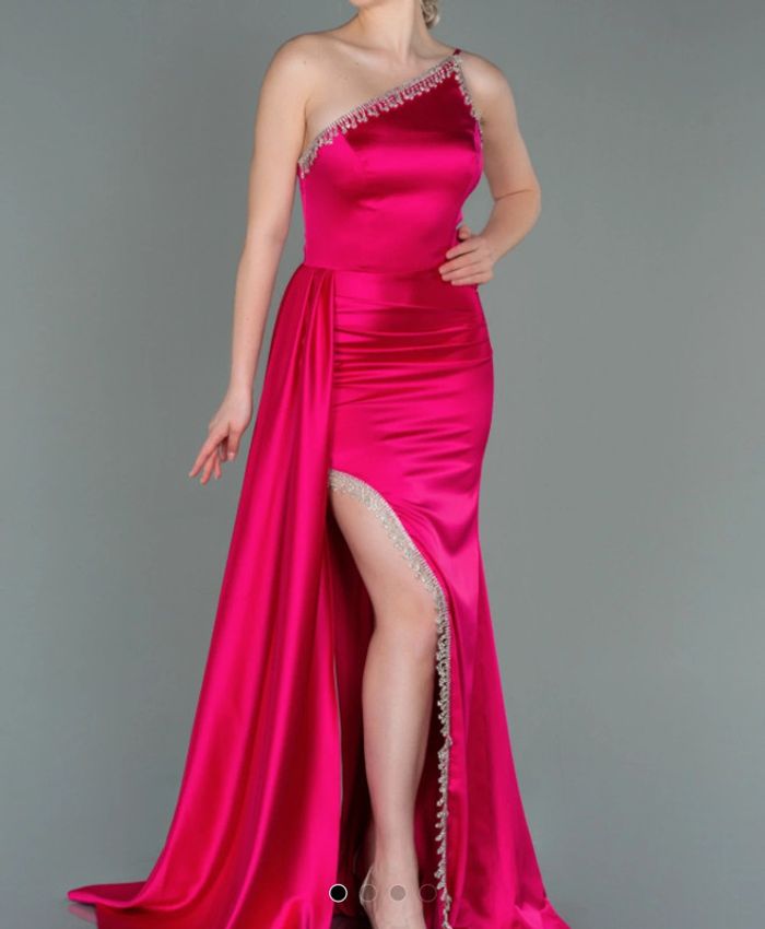 Robe de soirée en satin longue fushia taille 48 neuve - photo numéro 1