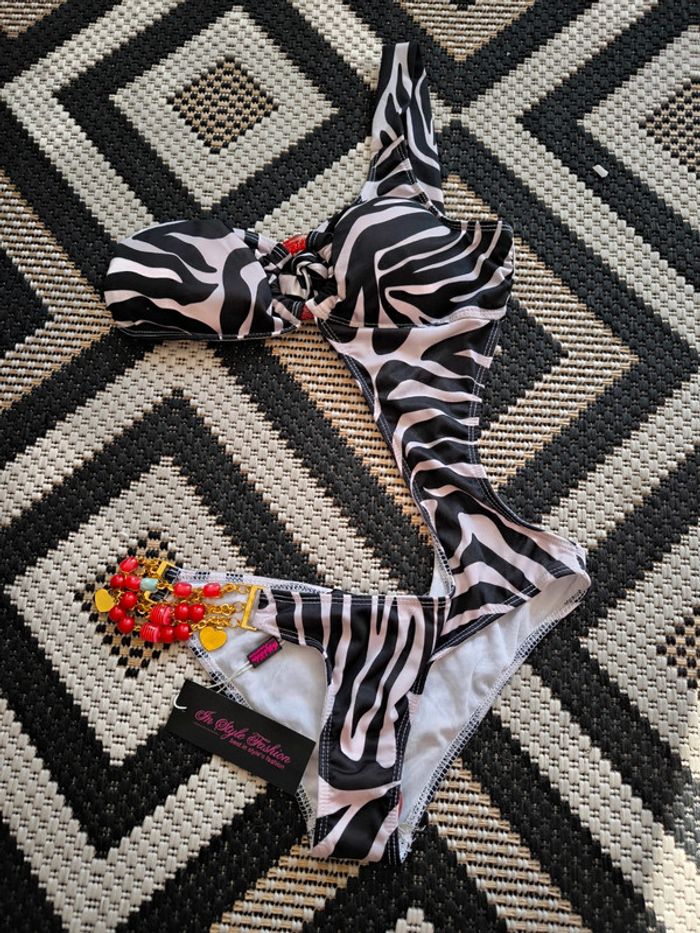 Maillot de bain zébré fond beige taille S 36 neuf - photo numéro 2