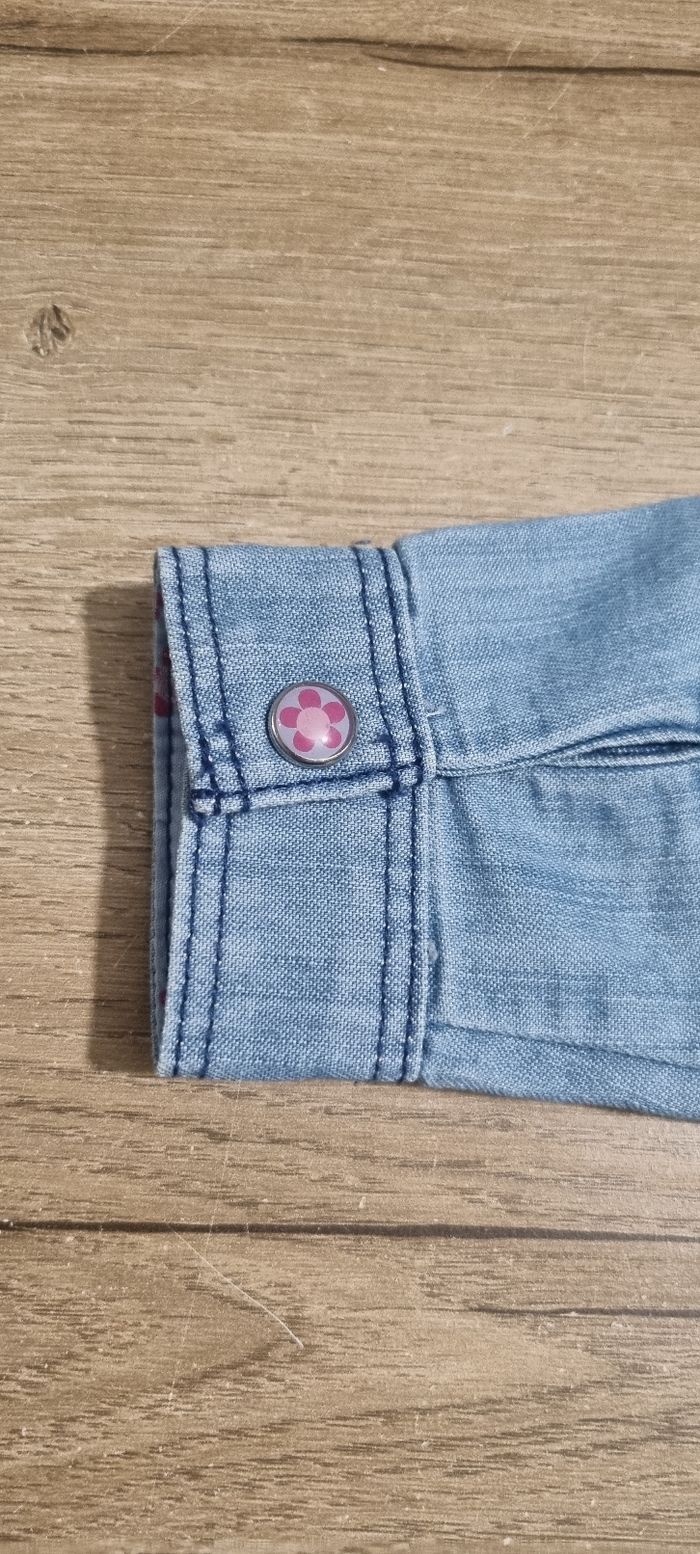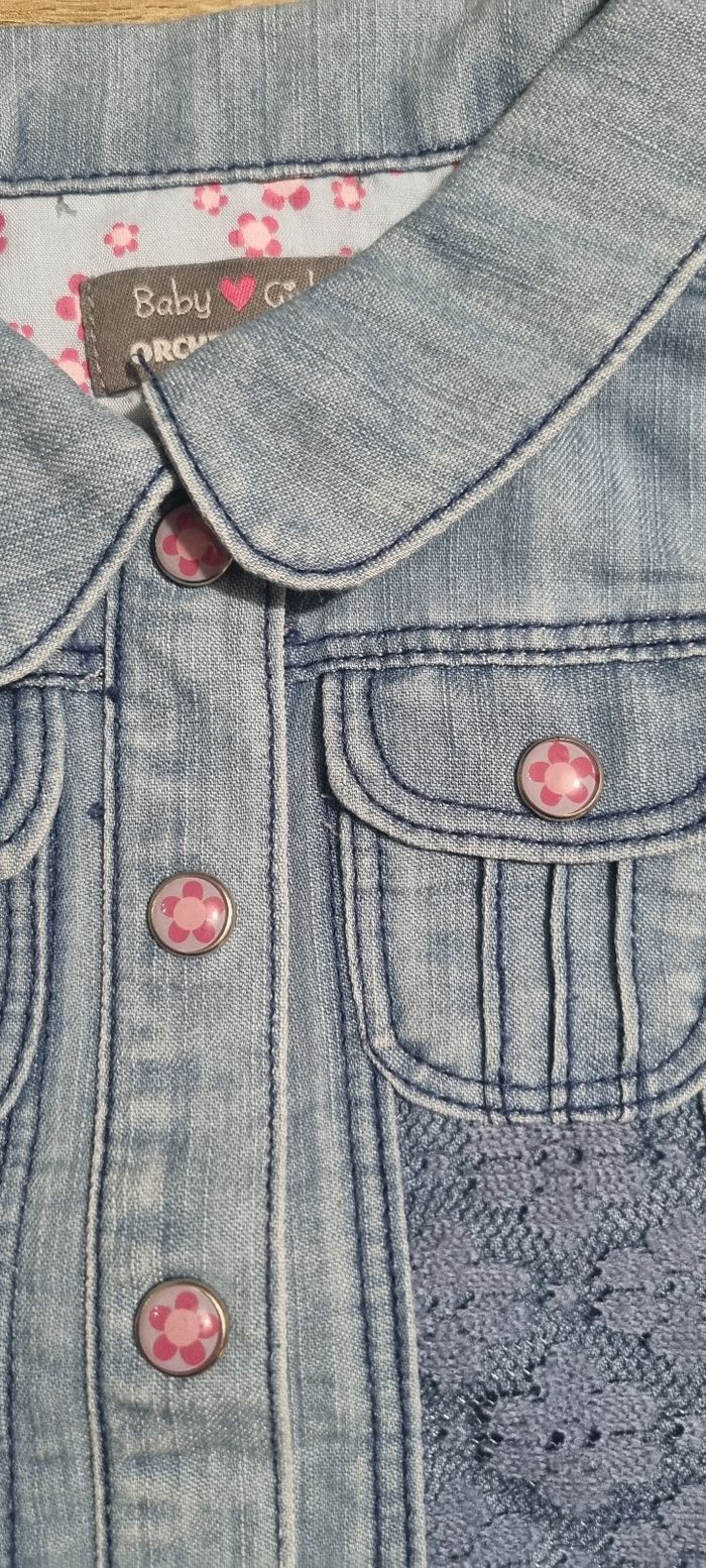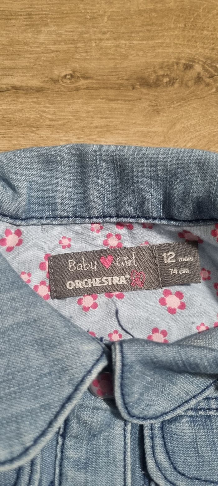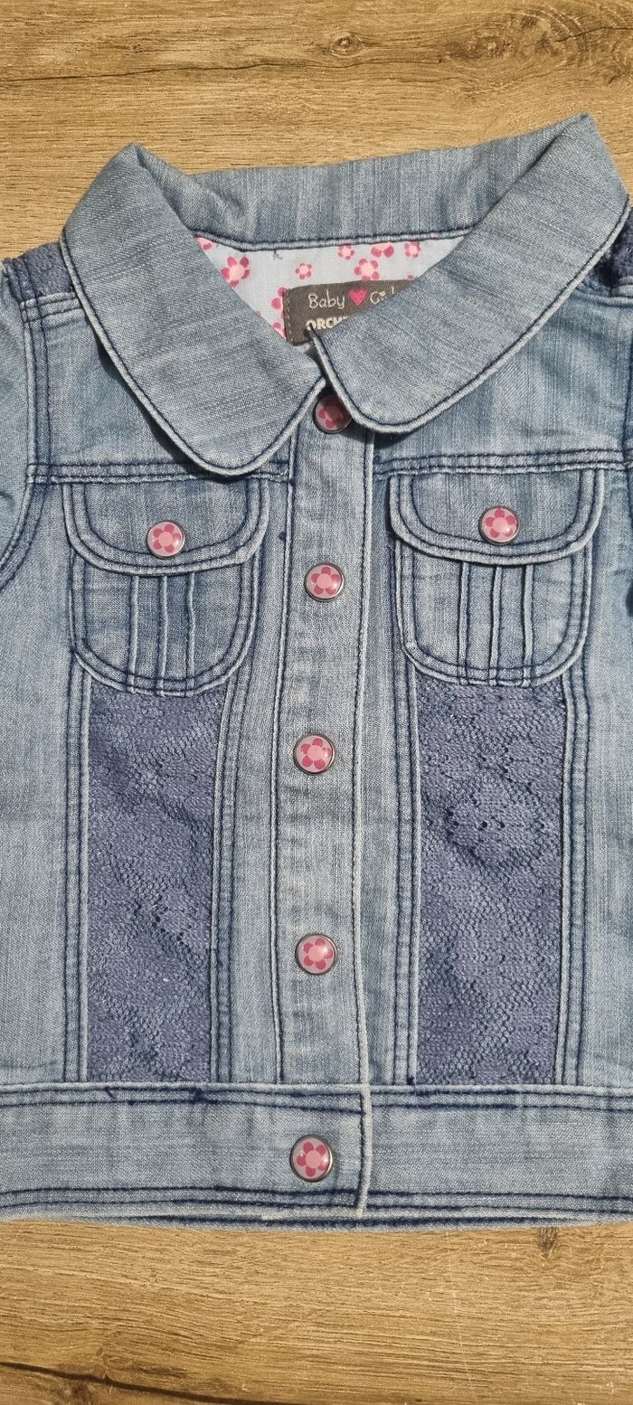 Jolie veste fine effet jeans avec dentelle Boutons pression à motif fleurs Orchestra taille 12 mois Parfait état