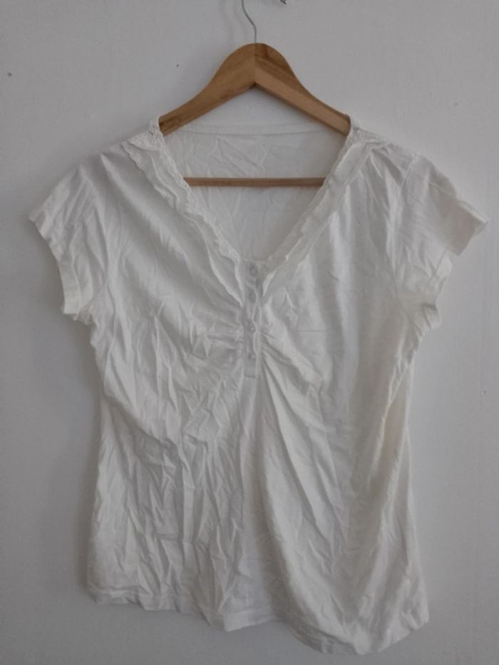 T-shirt blanc avec petit bouton devant Taille 42/44