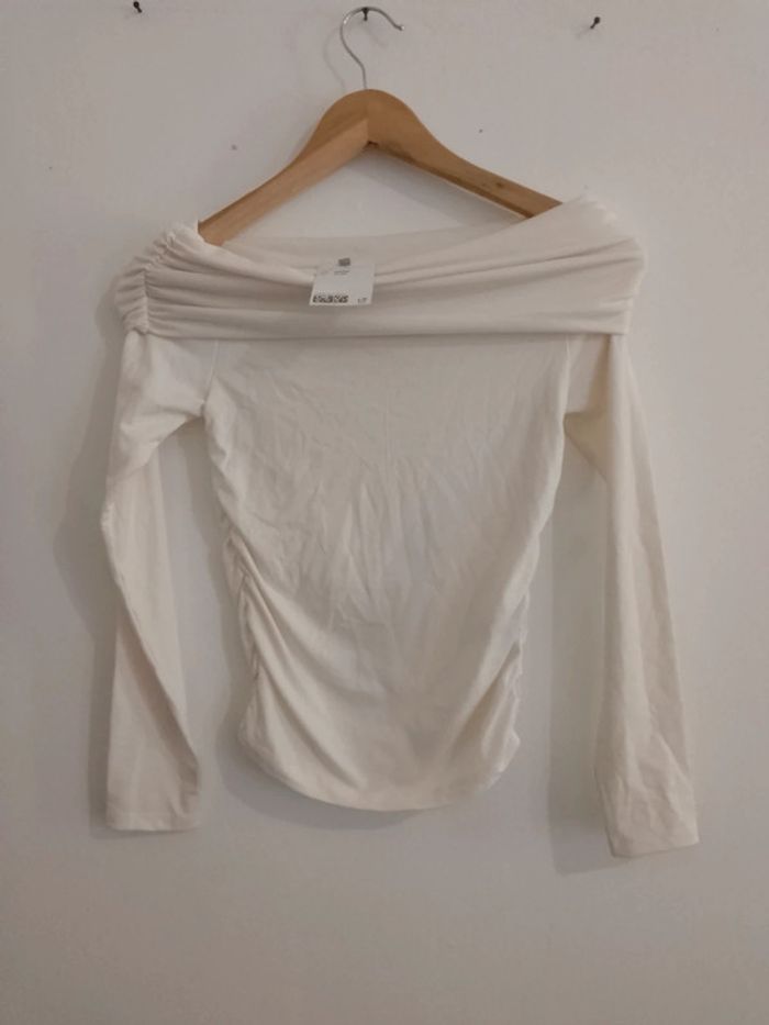 Top blanc cassé Épaule dénudé H&M Taille 11-12 ans Neuf avec étiquettes