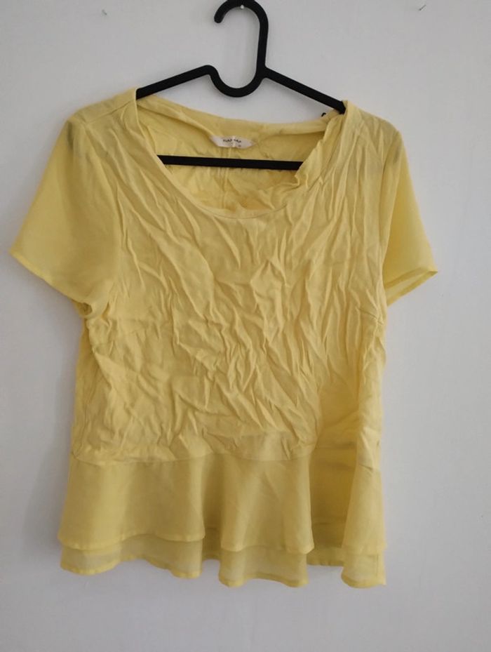 Blouse jaune manches courtes NafNaf Léger parfait pour les beaux jours Taille 40 Très bon état ( juste froissé)