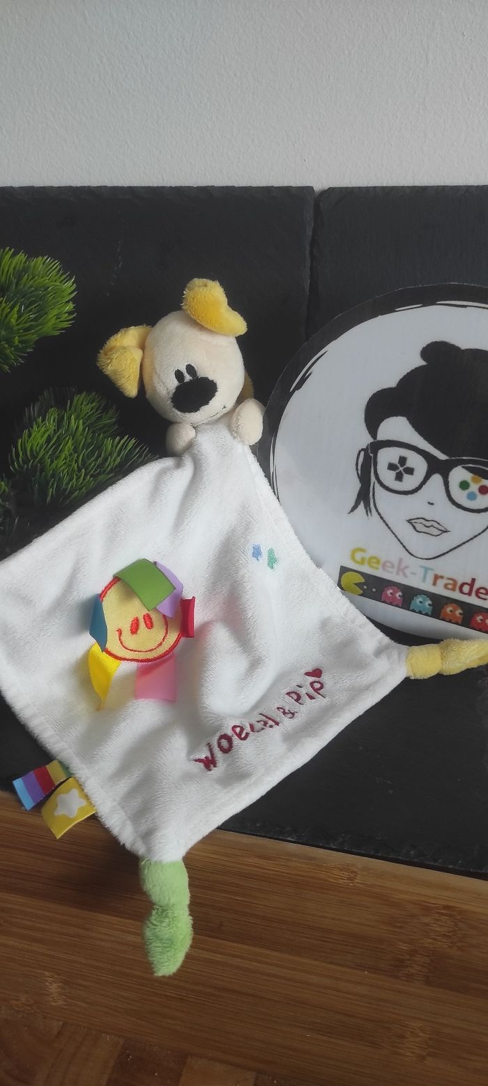 remise en main propre possible : Vertou (44) Référence : DD002652 #geektradewoezeletpip Bon etat Le logo en arrière plan fait 20 cm de diamètre Afin de ne pas abîmer les doudous et de laisser le choix dans l'utilisation de la lessive les peluches ne sont pas lavées avant envoi Description complément : Petit nettoyage à prévoir Vous achetez ce que vous voyez les photos font entièrement partie de la description Transport : Les frais de transport comprennent les frais du transporteur ainsi que l'emballage pour protéger au mieux votre achat. Chaque achat est envoyé en format colis avec numéro de suivi Le poids du colis est de 500g finit (je ne peux pas faire moins) il peut donc y avoir plusieurs objets dans le carton si vous le souhaitez (contactez moi afinde grouper les frais de port) Référencement : #geektradedoudou #peluche #plush  #doudou #enfant #bebe #knuffel #comforter #felpa #Plüsch #doudou #comforter #schnuffeltuch #kuscheltuch #knuffeldoekje #mantita #naninha #copertina #peluche #plush #stuffedanimal #kuscheltier #knuffel #bichinhodepelúcia #nostalgie #nostalgia #vintage