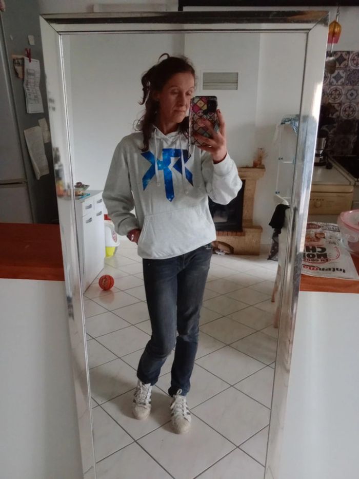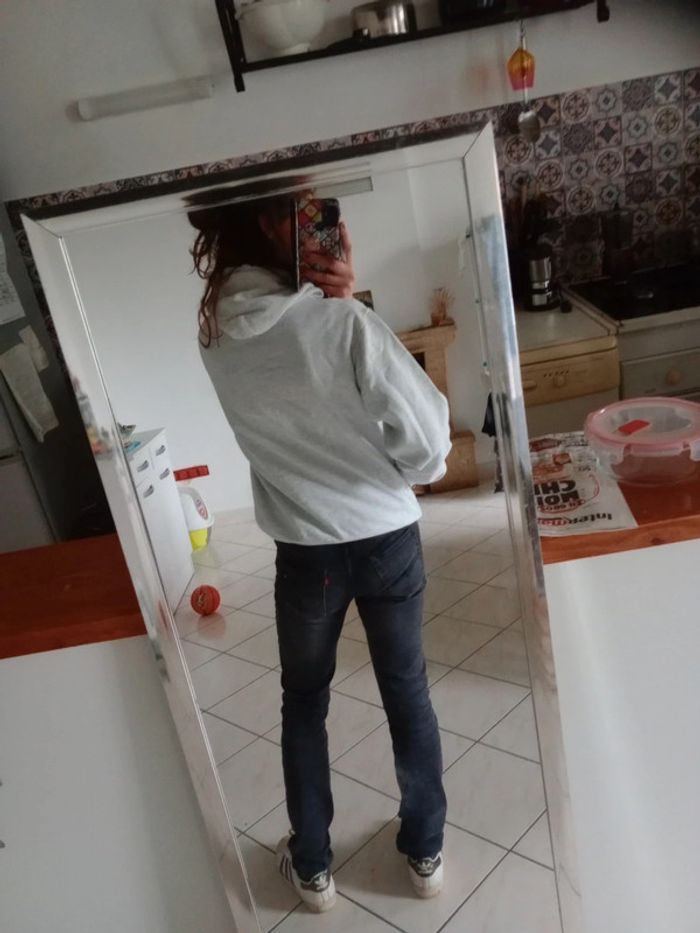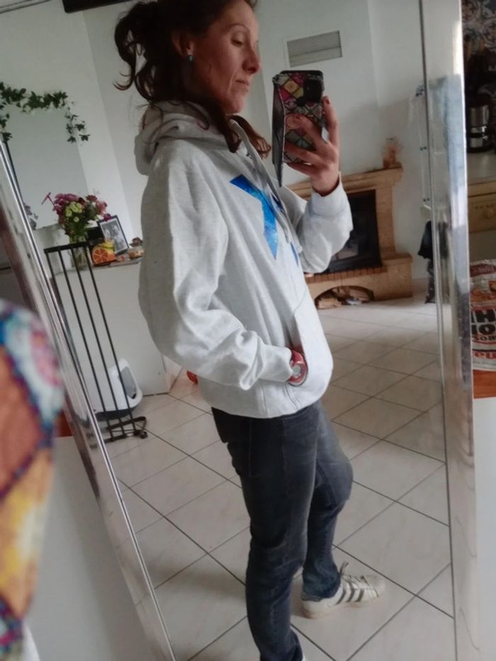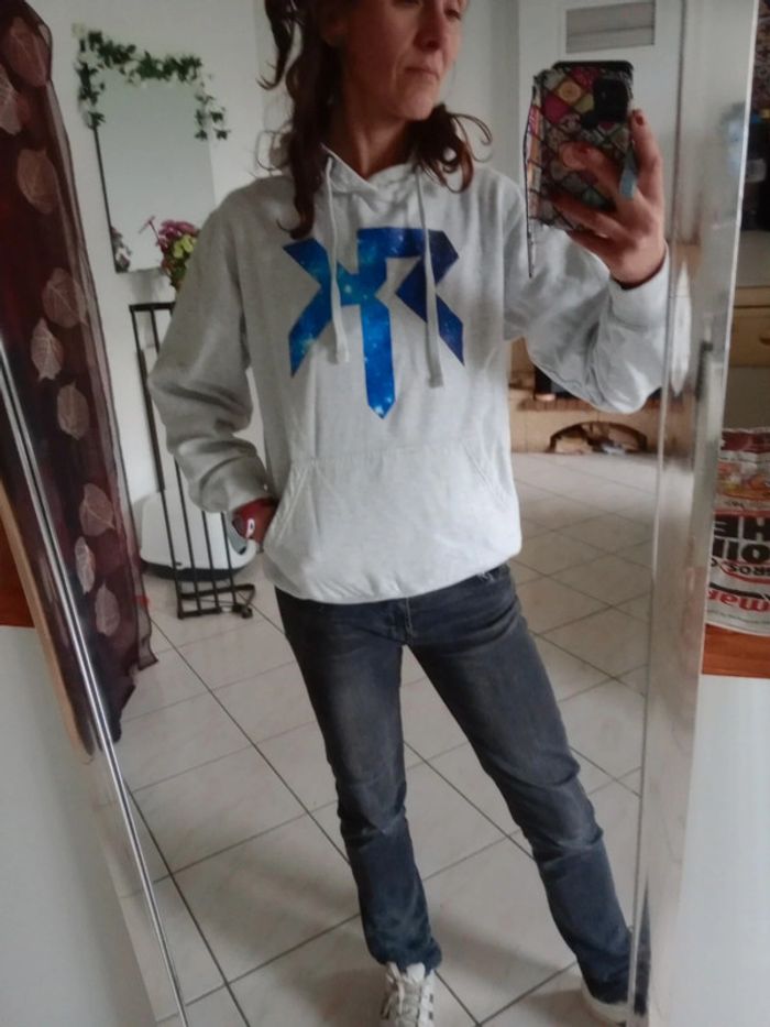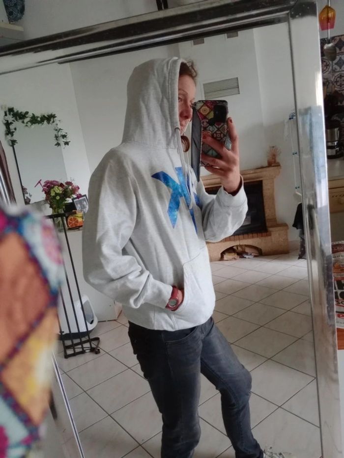 Sweat à capuche M gris clair chiné motif espace c81D - photo numéro 4