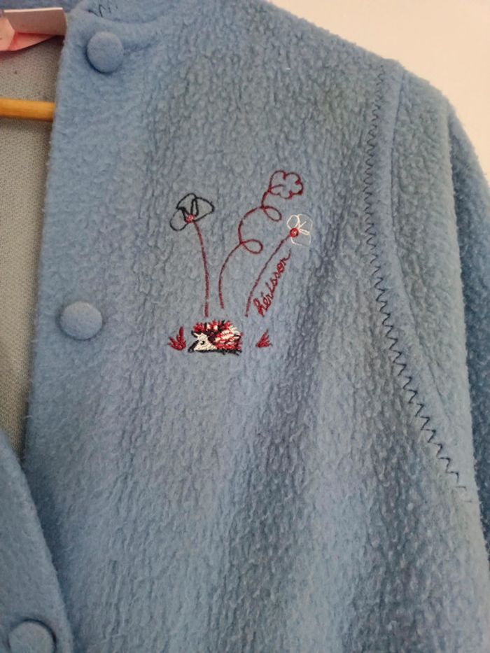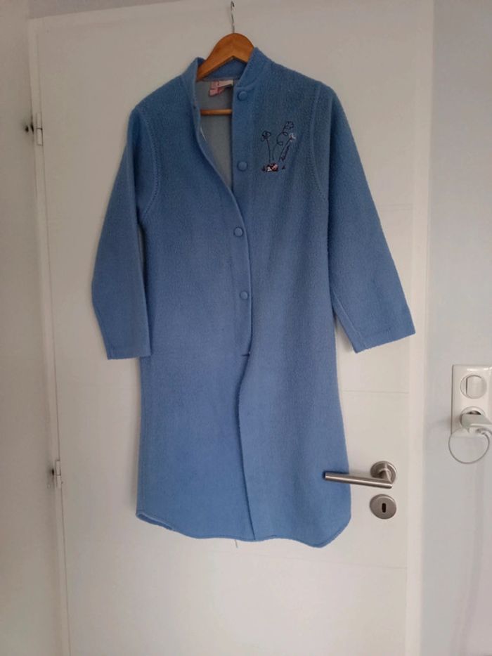 Robe de chambre taille 38. Coloris bleu, broderie hérisson. Il manque les 2 derniers boutons (voir photo). #ccj1367femme