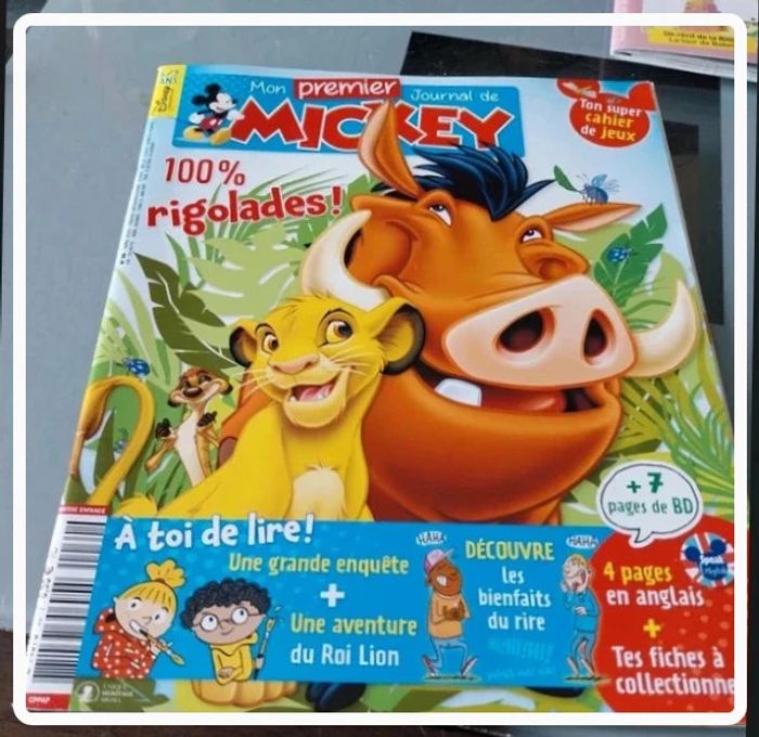 4 revues Mickey Junior Le journal de Mickey A fond dans la neige Les animaux nos supers copains Le trésor de Duckankhamon 100% rigolades Tous complets Très bon état 📦 Envoi rapide et soigné #sigrid14livreenfants