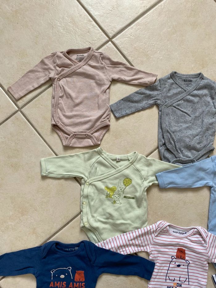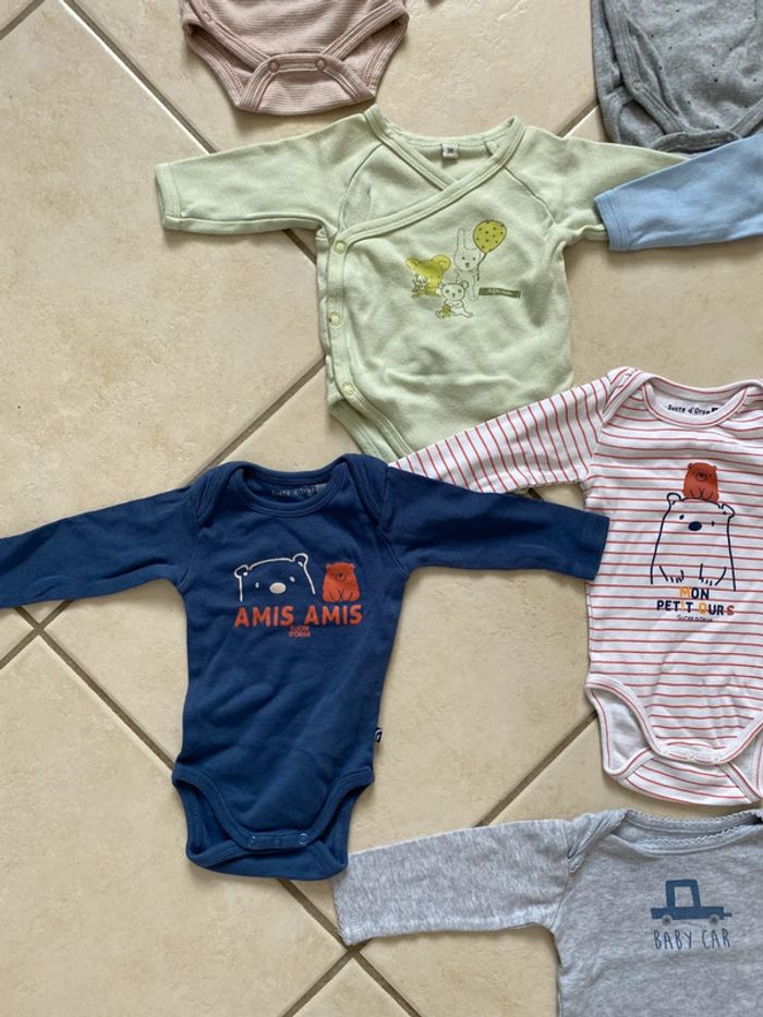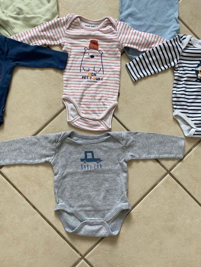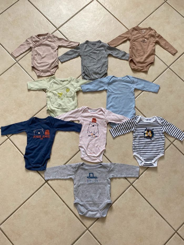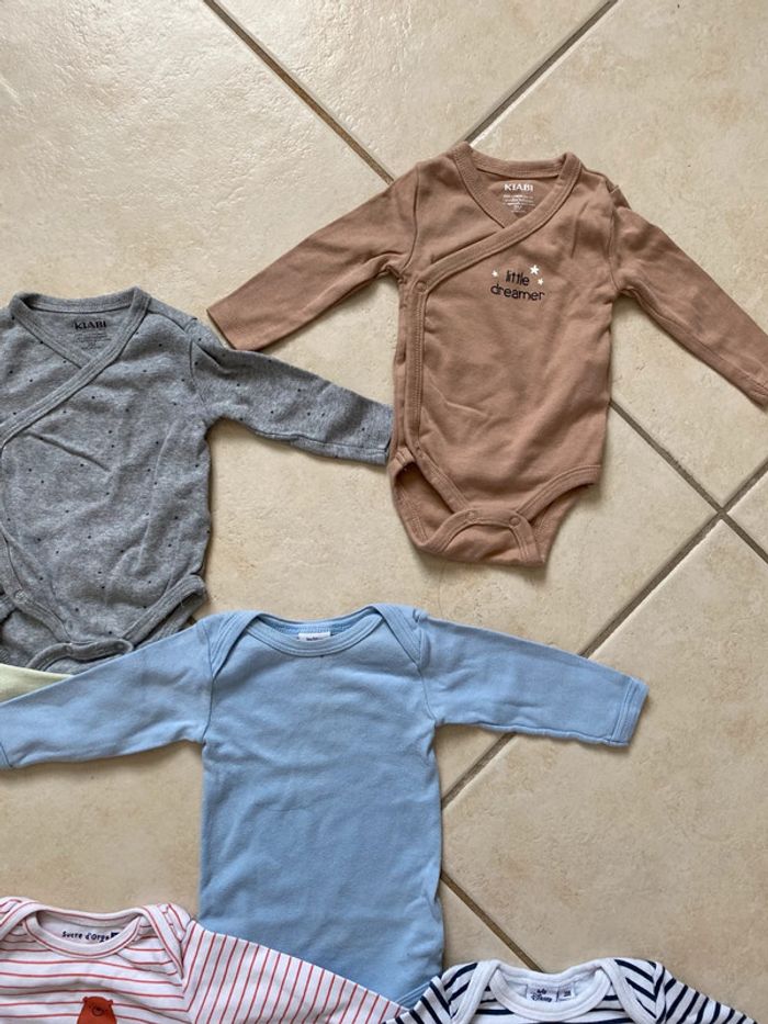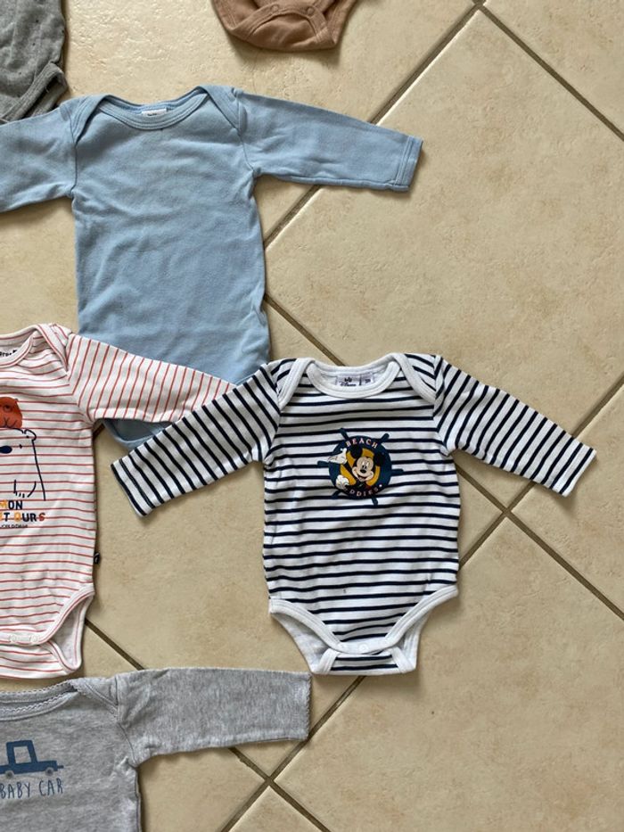 Lot de 9 bodies taille 3 mois en très bon état Différentes marque kiabi, Disney, sucre d’orge