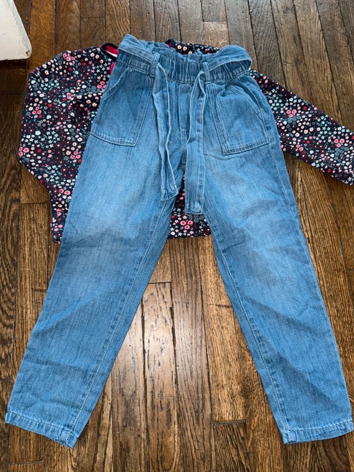 Sweat sergent major et jeans okaidi 7 ans Sweat plutôt en très bon état mais le bas des manches est un peu blanchi