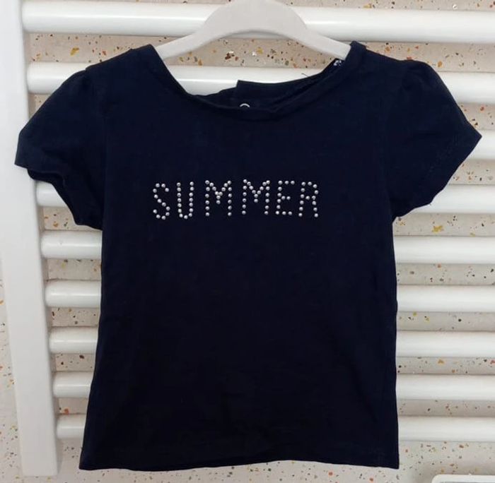Tee shirt manche courte bleu marine motif strass Tissaïa Taille 12 mois #sycaro35 #scaro3512mois #taille12mois #teeshirt #manchecourte #bleumarine #strass #tissaia B4470