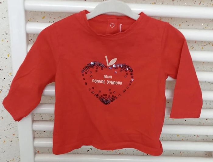 Tee shirt manche longue rose motif coeur avec paillettes Gémo Taille 6 mois #sycaro35 #sycaro356mois #taille6mois #teeshirt #manchelongue #rose #coeur #paillette #gemo B4459