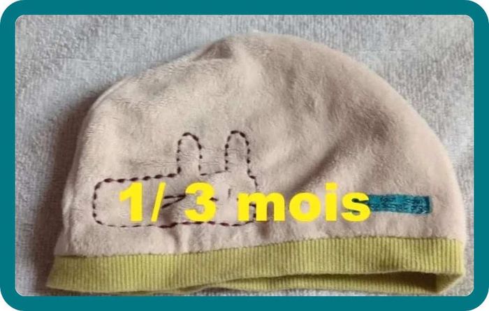 Bonnet crème vert anis Sucre D'Orge Taille 1 / 3 mois