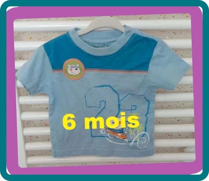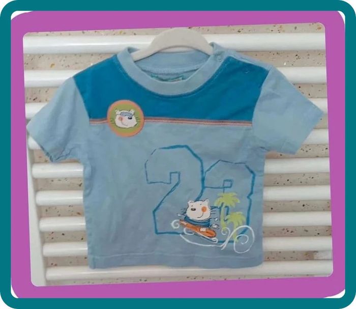 Tee shirt manche courte bleu imprimé Jungle & Beach Taille 6 mois #sycaro35 #sycaro356mois #taille6mois #teeshirt #manchecourte #bleu #imprime #jungleetbeach A0753