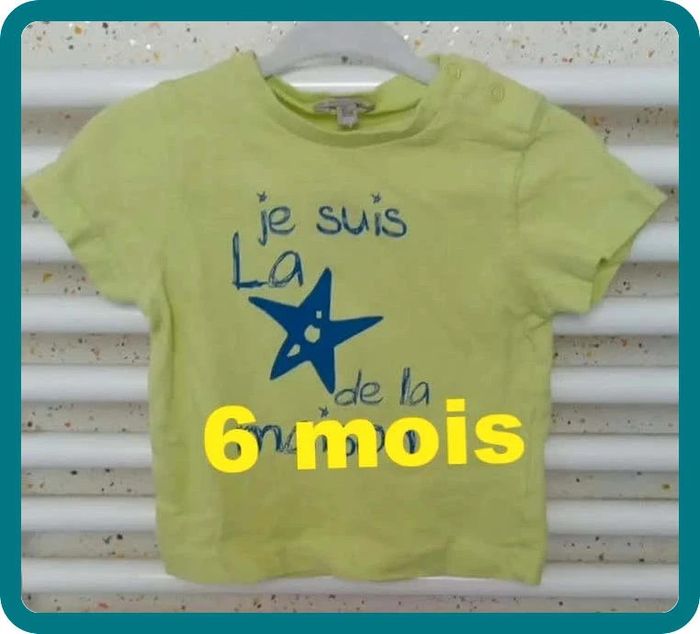 Tee shirt manche courte jaune imprimé bleu Grain de Blé Taille 6 mois - photo numéro 1