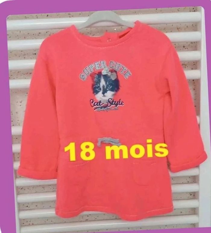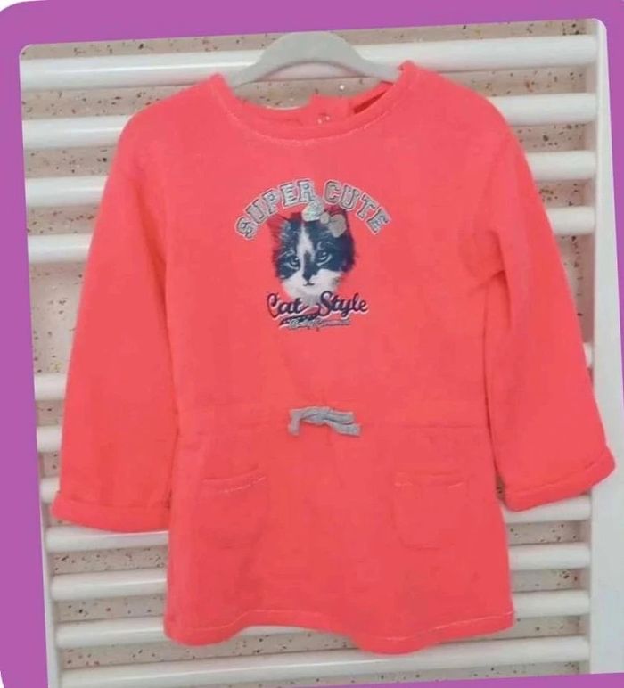Robe rose fluo imprimé chat Tissaïa Taille 18 mois JAMAIS PORTE #sycaro35noel #sycaro35 #sycaro3518mois #18mois #robe #fluo #chat #tissaia A3703