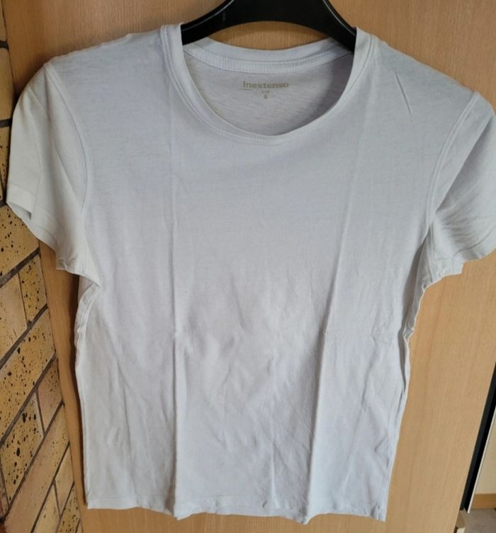 Taille S Blanc Manches courtes Bon état Aisselle à aisselle 45 cm Haut en bas 57 cm