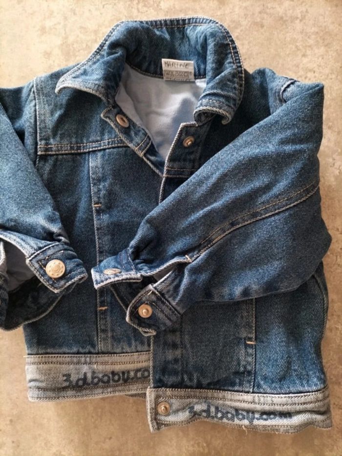 Blouson en jean entièrement doublé . Des pressions pour le boutonnage devant et aux bas des bras. #fanfanfille18mois@fanfan35320