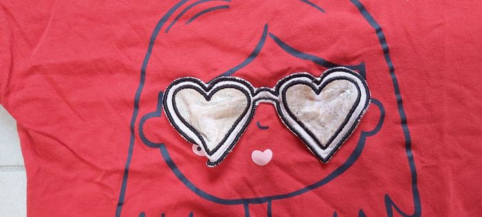 .Tshirt manche courte Motif fille avec lunette :Les lunettes se soulèvent Taille 4 ans #carineddivetementfillequatreans