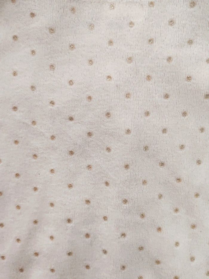 #amaandineeb_bebefille18mois D'autres articles en cette taille disponibles ici ⤴️ Veste blanche en velours ayant déjà bien servi (appartenu à ma nièce avant de servir pour ma fille). Étiquette du prénom de ma nièce collée à l'intérieur sous l'étiquette de taille. Couleur un peu passée mais on voit encore bien les pois dorés. Poches en forme de cœur. Fermeture classique. Oreilles sur la capuche. Kiabi. 18 mois.
