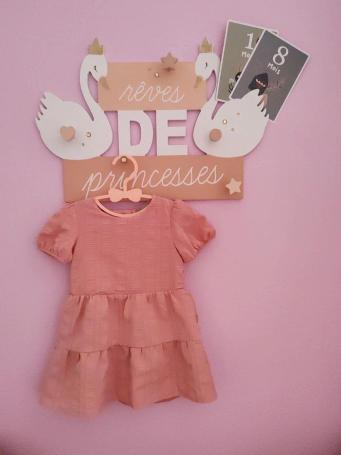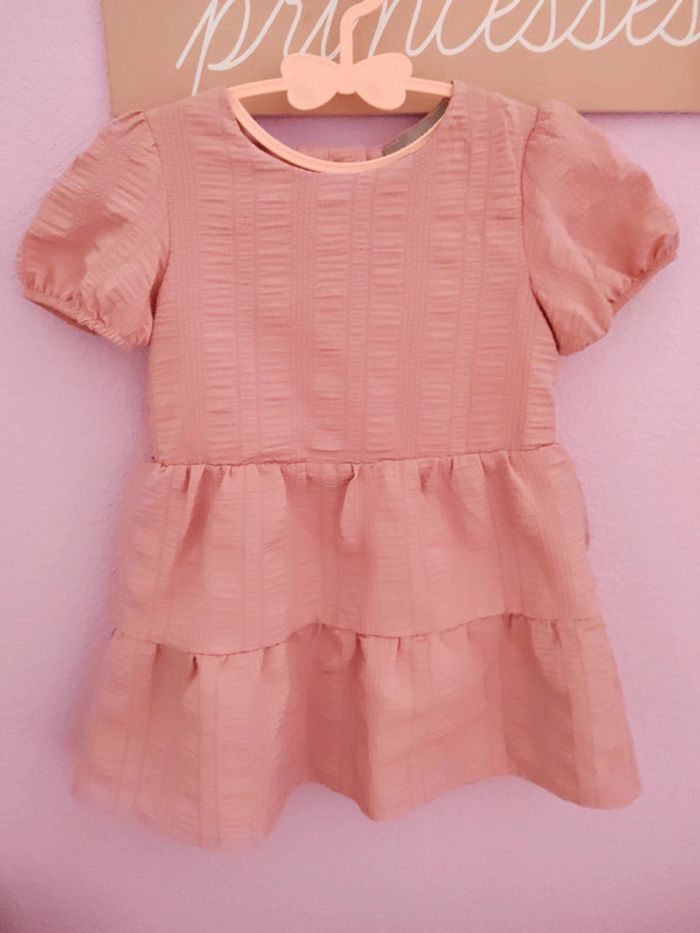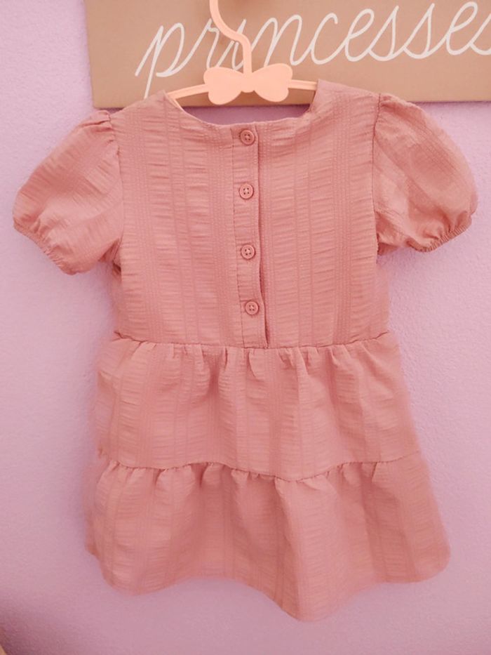 #amaandineeb_bebefille18mois Jolie petite robe à manches courtes couleur vieux rose. Tissu effet gaufré. Idéale pour cérémonie ou occasion spéciale. Robe doublée. Boutons dans le haut du dos. Très bon état. Sans tâches ni trous. Primark. 18 mois.