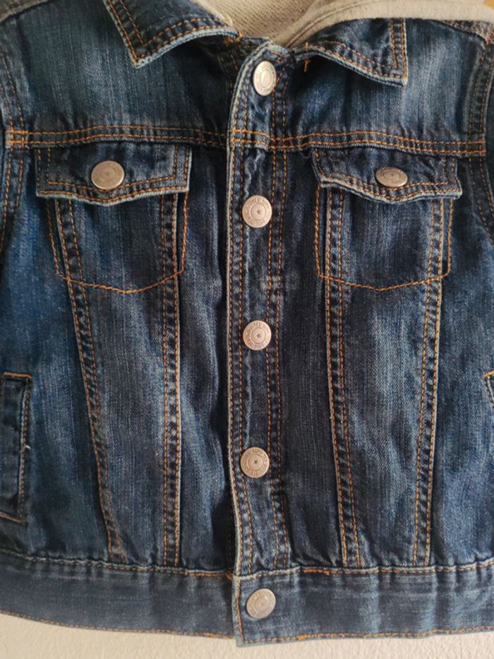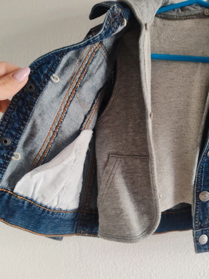 #amaandineeb_bebegarçon24mois Veste en jean doublé d'un veston amovible sans manches gris à capuche. Boutons à pression. Très bon état. Sans tâches ni trous. Tex. 23 mois.