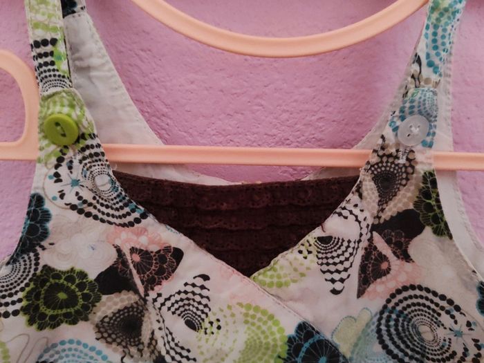 #amaandineeb_bebefille18mois Petite robe à bretelles motifs esprit Desigual dans les tons bleus verts et marrons. Fermeture dans le dos. Entièrement doublée. Très bon état. Sans tâches ni trous. Orchestra. 18 mois.