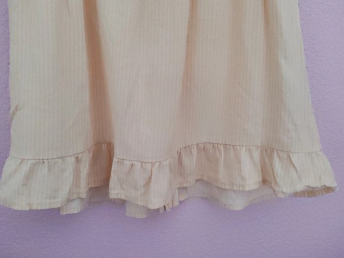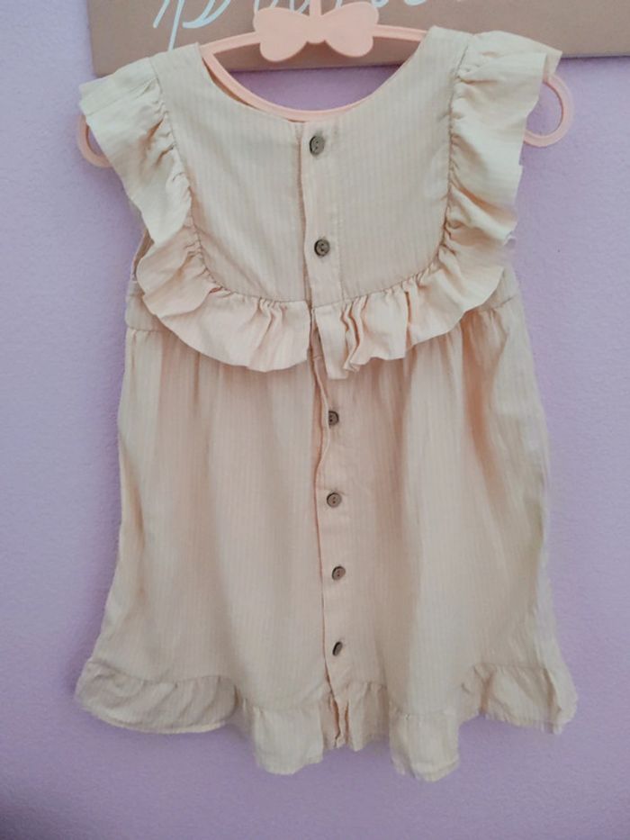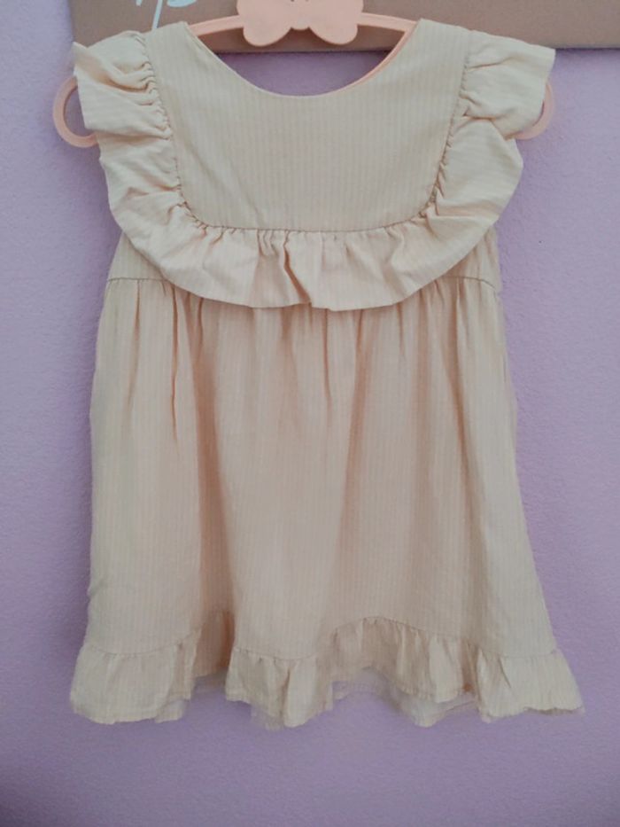 #amaandineeb_bebefille18mois Magnifique robe 👗 beige et blanche avec petit volant au niveau du col devant et dans le dos. Robe légère. Idéal pour une cérémonie ou un événement particulier. Boutons tout le long du dos. Excellent état. Sans tâches ni trous. Kiabi. 18 mois.