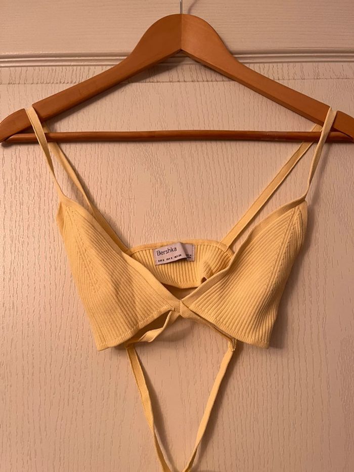 Mini crop top jaune pale bershka taille s - photo numéro 1
