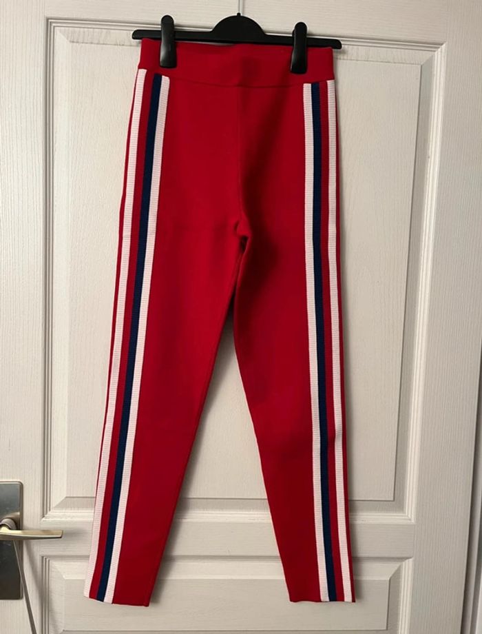 Legging rouge Claudie pierlot taille 1 avec bande bleu et blanc sur le côté