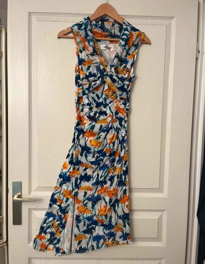 Robe fleurie Diane von furstenberg taille s bleu et orange