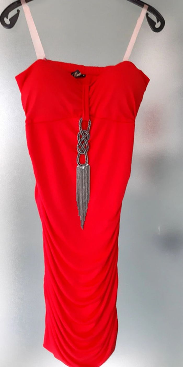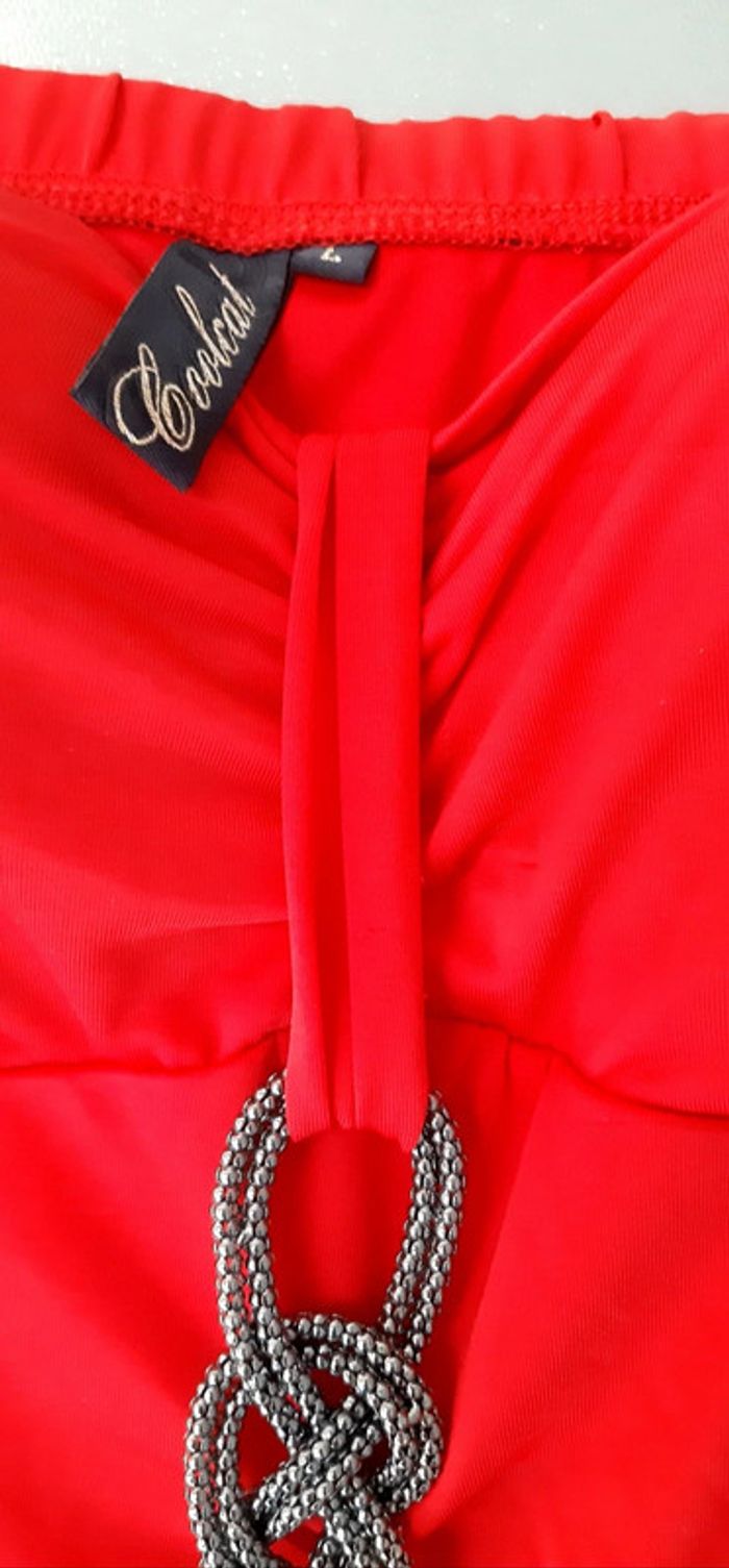 Rouge plus foncé que sur photos, bretelles amovibles, dimensions cf photos, tissus extensible, très bon état comme photos 🙂