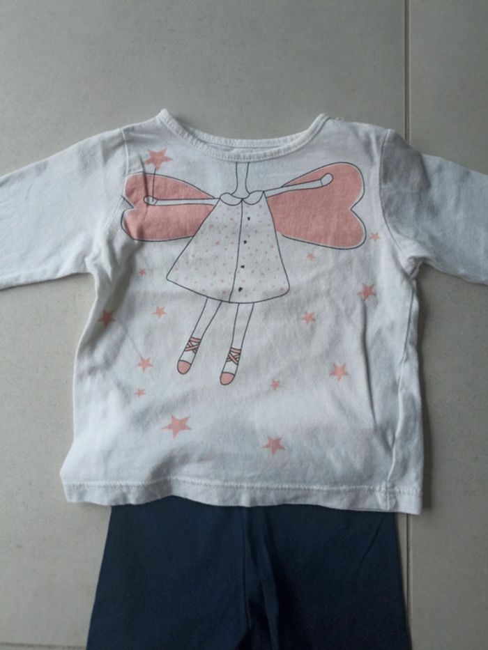 Ensemble en coton léger sweat + legging. Taille 6 mois. Legging bleu nuit Kiabi, haut je ne sais plus. Parfait etat