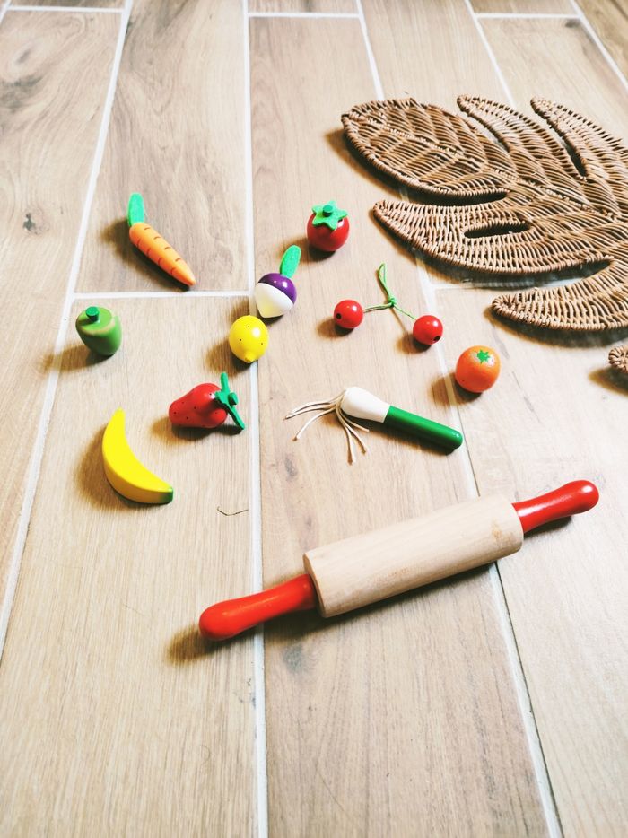 🍓Dinette lot petits fruits et rouleau à pâtisserie en bois marque Djeco JB1523