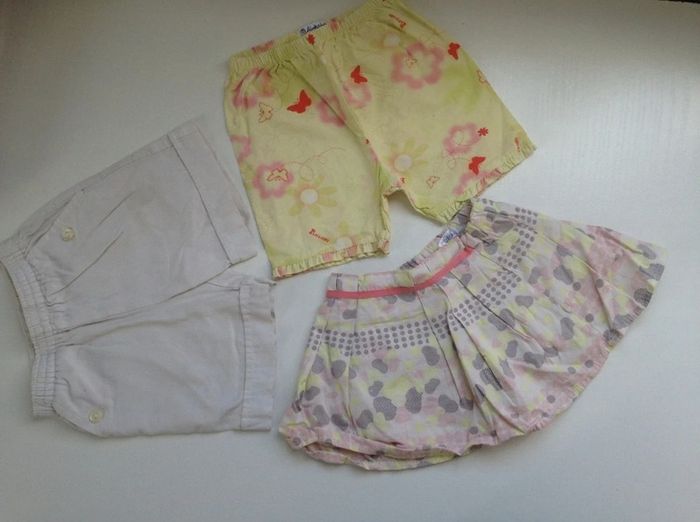 short jaune-vert en bonne état jupe en bonne état (avec petite doublure par contre le short blanc à une tache (photo) du coup je l'offre #troc38420_6moisfille