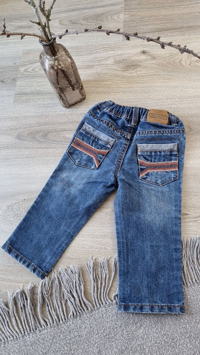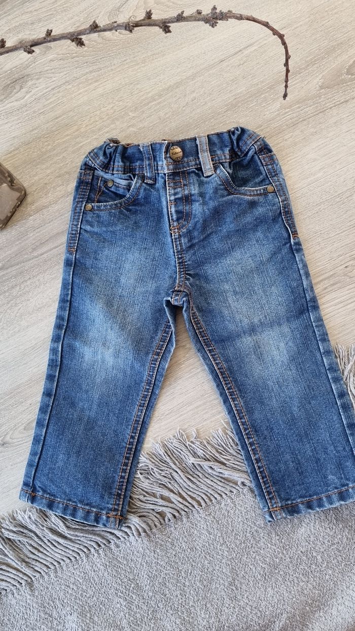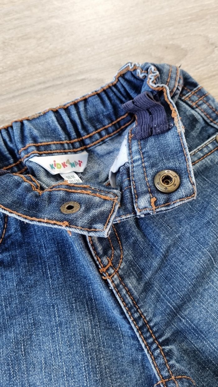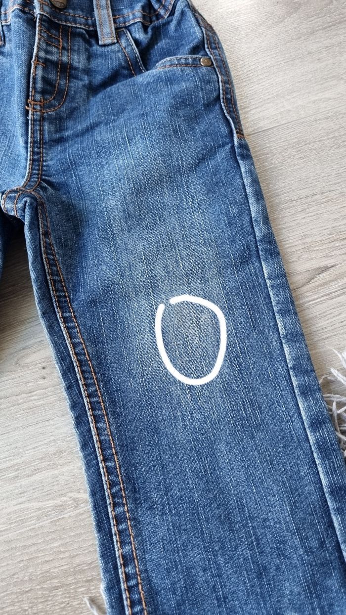 Très peu porté. Jean de bonne qualité, réglable à la taille de chaque côté + bouton pression devant. Une légère trace de vert d'herbe sur le genoux gauche (voir photos n°5 et n°6)