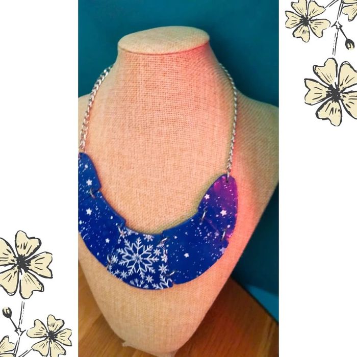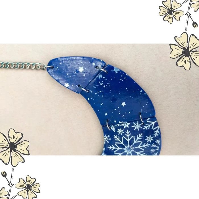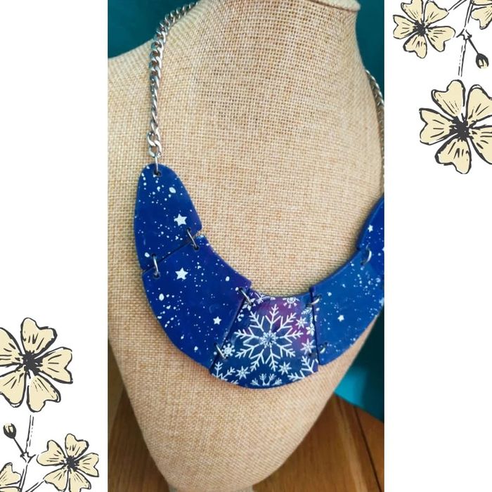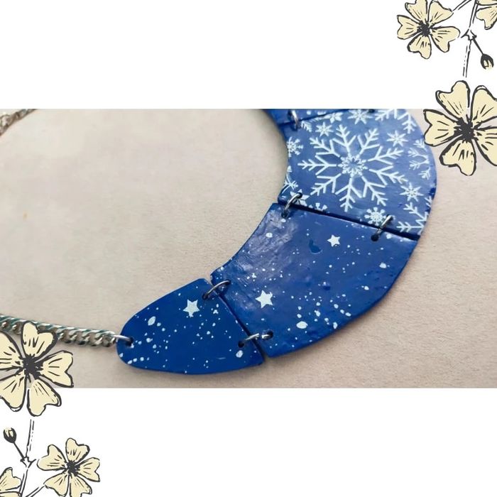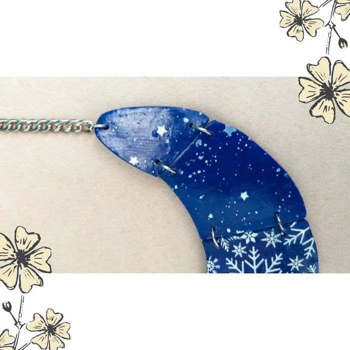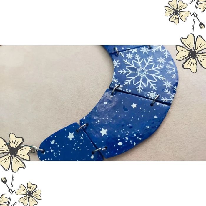 Pièce unique et spectaculaire 💙✨, ce collier plastron fait main évoque une nuit d’hiver étoilée. Réalisé en pâte polymère peinte à la main, il affiche un dégradé de bleus profonds, ponctué d'étoiles et d’un majestueux flocon de neige ❄️. Chaque élément est relié par des anneaux et monté sur une chaîne argentée, pour un rendu à la fois artistique et affirmé. Parfait pour les fêtes, un événement spécial ou pour donner du caractère à une tenue sobre. Léger à porter malgré son style imposant. 🔹 Pièce artisanale unique 🔹 Finition vernie brillante 🔹 Longueur ajustable (chaînette d’extension) 🔹 En parfait état – neuf, jamais porté 🔹 Collection Brume Bleue – bijoux bleus inspirés du ciel, de la glace et de la magie nocturne. 💌 Je soigne l’envoi & l’emballage. Envoi rapide. 🎁 Possibilité d’envoi en lot ou d’ajouter un petit cadeau surprise en cas de plusieurs achats ! L3R #collier #collierfaitmain #bijouartisanal #collierbleu #collierhiver #statementnecklace #flocondeneige #bijouoriginal #brumebleue #bijoucreateur #collierfantaisie #colliergalaxie #etoiles