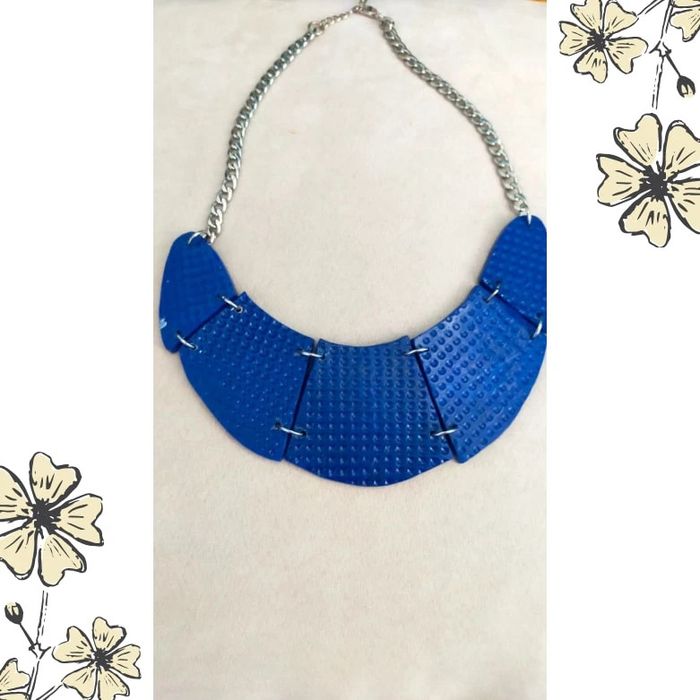 Collier statement bleu nuit peint à la main – Collection Brume Bleue - photo numéro 11