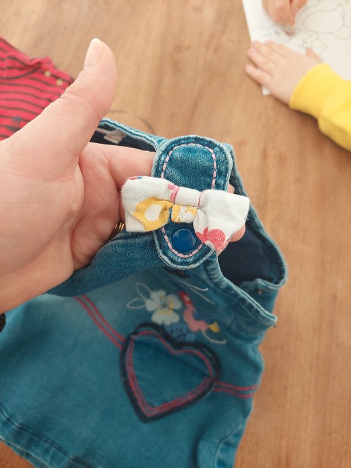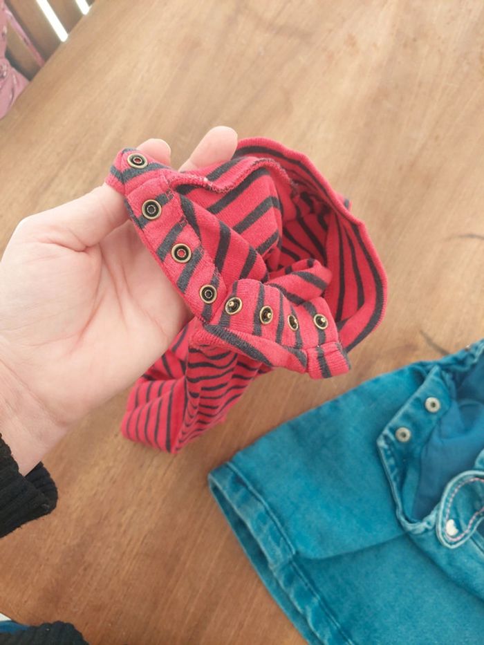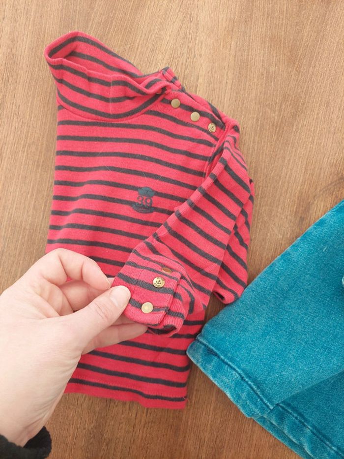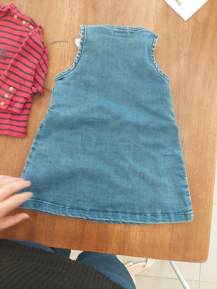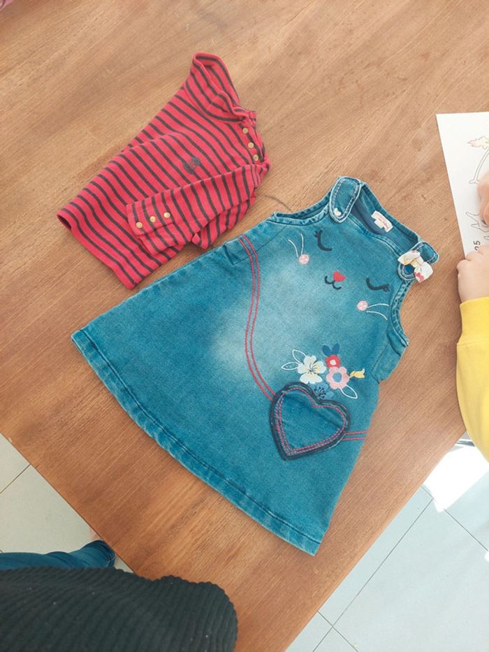 Très bon état vendu avec petit col roulé rouge rayé idéal 18mois 1 des bouton haut de la robe est décoloré