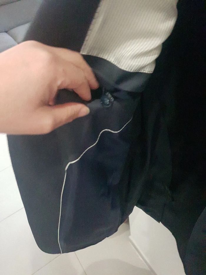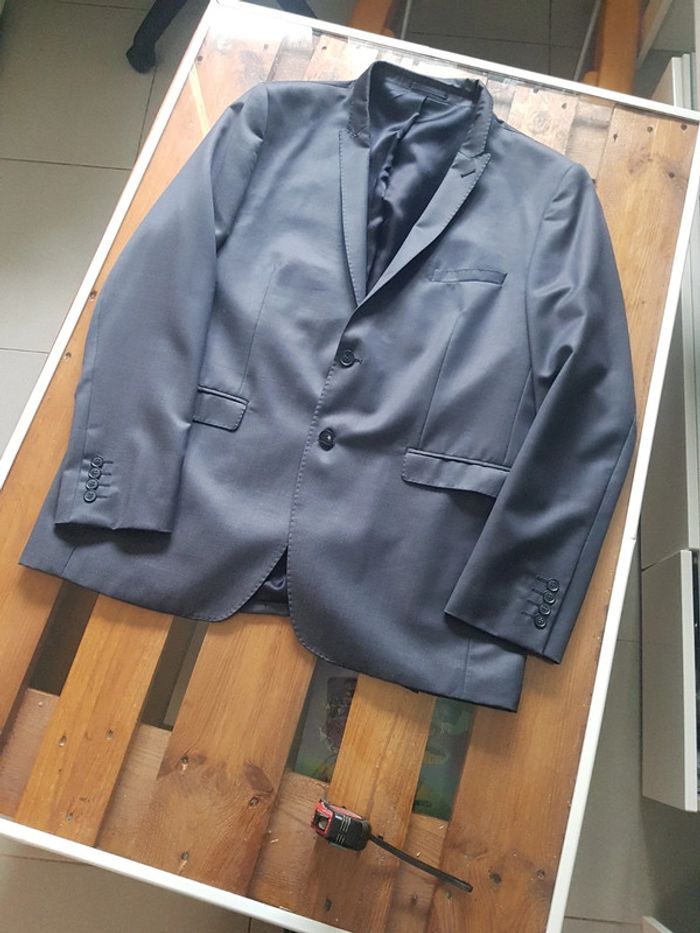 Excellent état, gris bleu légèrement satiné en effet 61cm sous aiselles, longueur 82cm