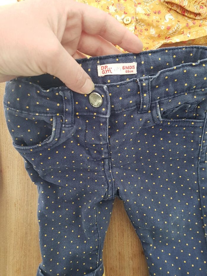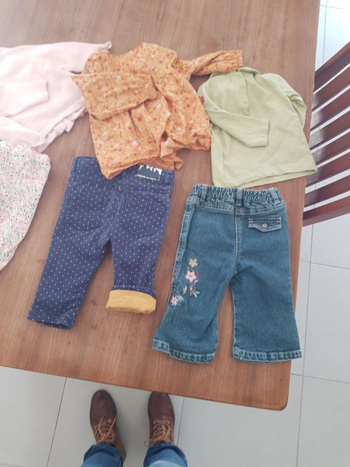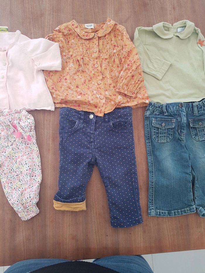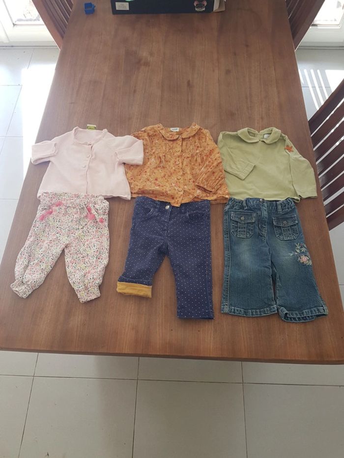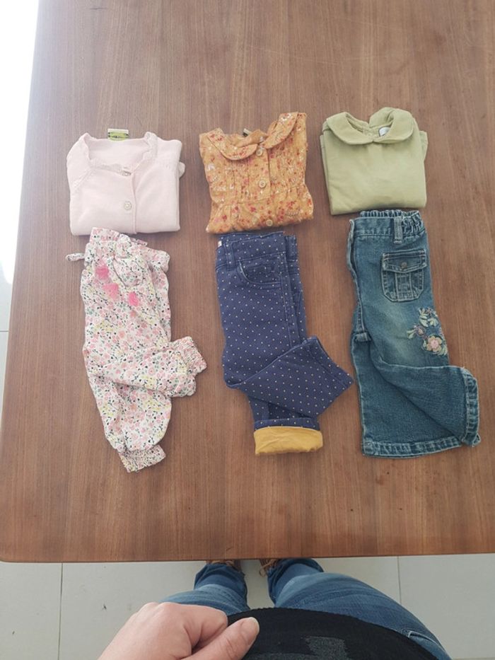 Très bon état, plusieurs marques ( dpam/ tape à l oeil kiabi etc. ) Etiquette derriere pantalon à poids à découdre. La chemise est en 12mois mais c'est ideal pour le 6mois