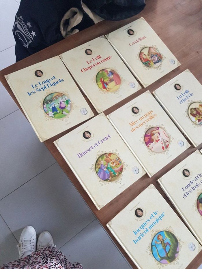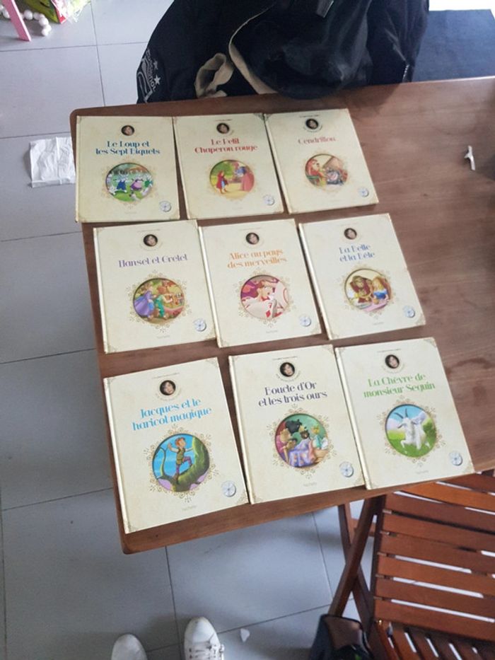 Collection de 9 livres. histoire + cd Excellent état, 3 pochettes ont du être changé dans jacques , boucle et la chèvre. aussi dans la chèvre du papier blanc manque dans la 1 ere page , enfin c'est vraiment à lendroit des cd que ca a mal vecu tout le reste est nikel .