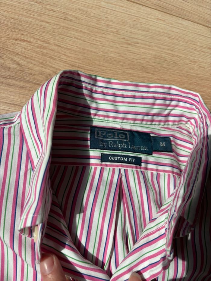 Chemise à manche longue Ralph Lauren rayures rose blanche et verte avec logo vert taille M - photo numéro 5