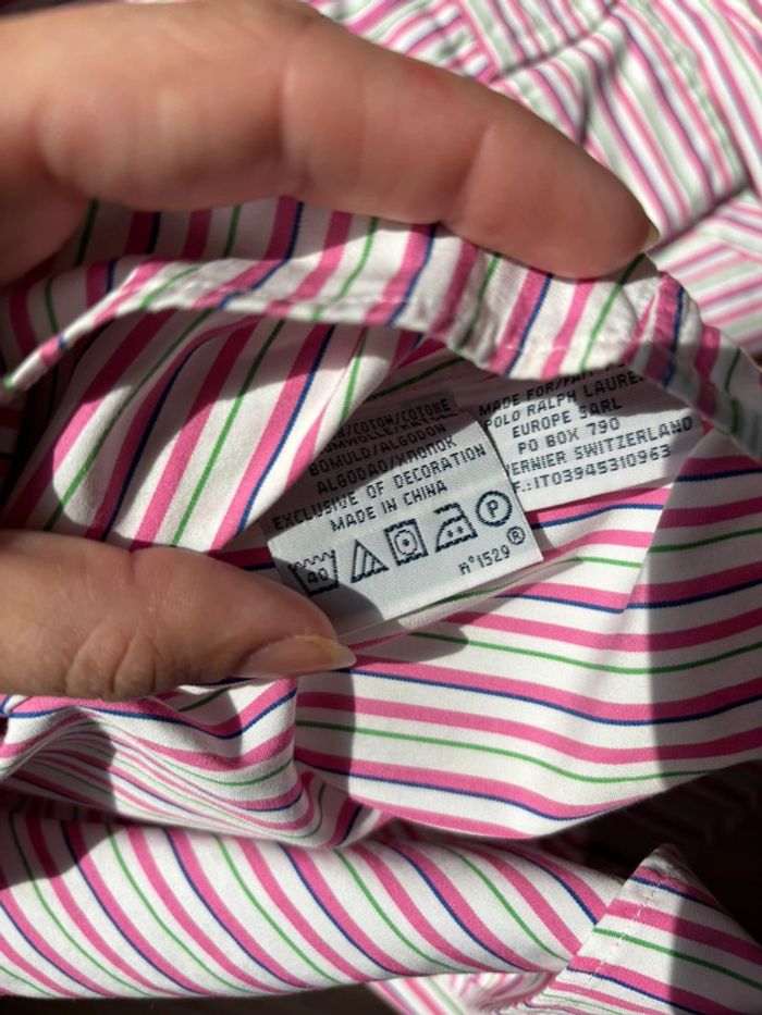 Chemise à manche longue Ralph Lauren rayures rose blanche et verte avec logo vert taille M - photo numéro 6