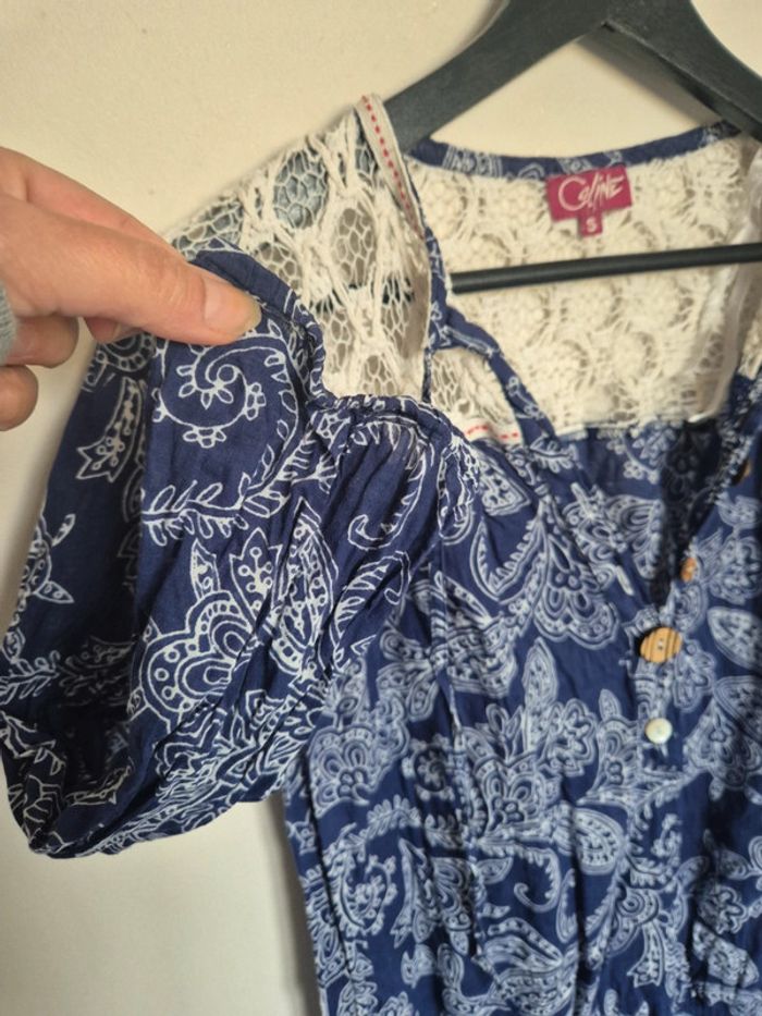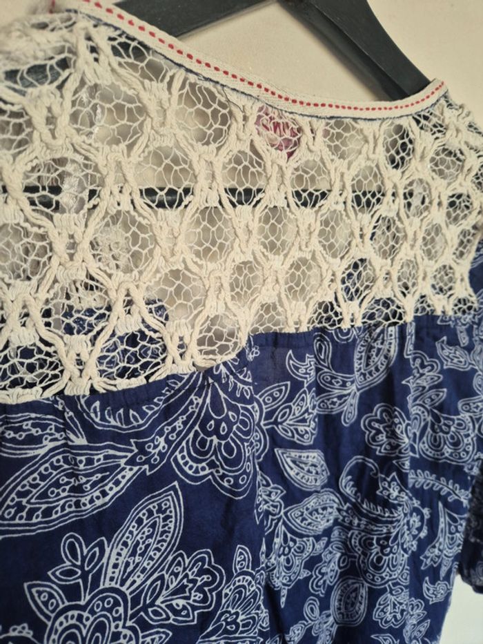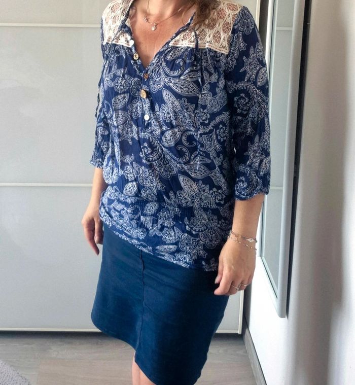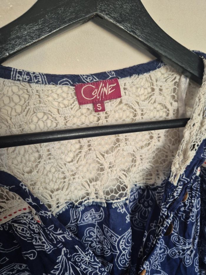 📌 Lot 20% de remise pour l'achat de 5 articles, suite ... Blouse bleu et blanche à motif manche 3/4, broderie sur le haut, lien à nouer sur le devant, ➡️Largeur à plat sous les bras 47 cm ➡️Longueur 60 cm ➡️ 100 % coton ⭐ Excellent état ✈Envoi rapide des colis 💗 Abonnez vous à mon profil, nombreux articles ajoutés régulièrement ! 🌸 Tapez Laetitresors pour voir mes annonces #laetitresors_blouse36 #laetitresors #blouse #coline #bleu #blanc #lien #nouer #dentelle #crochet