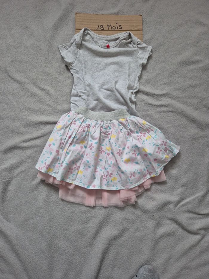 Jupe 2 en 1 vertbaudet et body tape à l’œil Tres bon état. Réductions sur lots activées #thithilde5715bebefille18mois