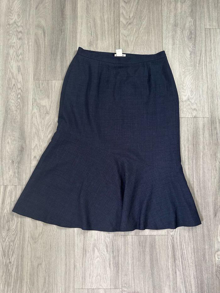 Jupe tulipe - Excellent état - Taille 44 équivalent XXL Dimensions en bas de l’annonce - Bleue marine - Doublure intérieure - Coupe tulipe - Élastique à la taille - Anne Weyburn - Vintage, années 80’ - 100% polyester Dimensions: - 42 à 45cm à la taille - 77cm de long