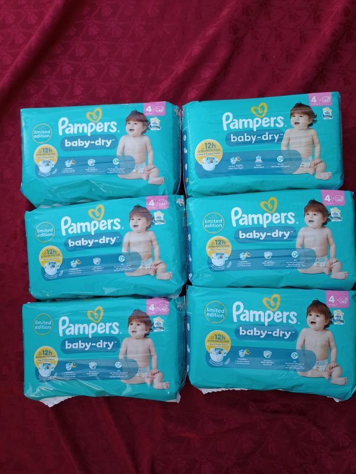 Lot de six paquets couches Pampers jetables baby-dry T4 taille 4